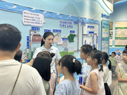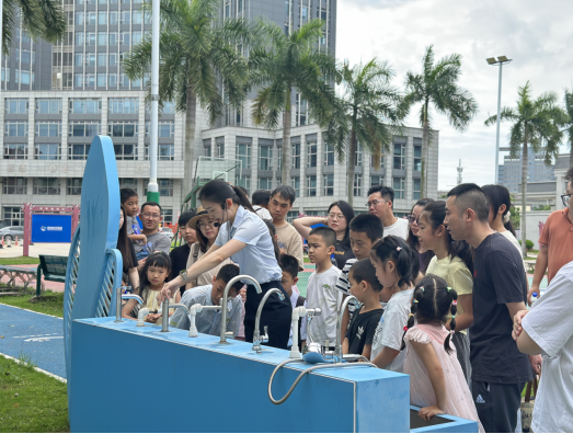 活動伊始,孩子們來到節水教育社會實踐基地。在室外,專業人員生動講解水情知識,介紹海綿城市道路建設理念,孩子們認真聆聽;在室內,大家有序參觀惠州供水文化展覽館,踴躍參與節水知識問答互動,在趣味中加深對水資源的認知。