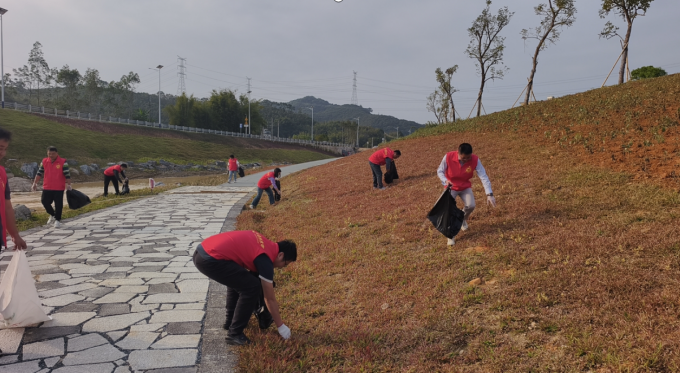 活動中,黨員干部們身著紅色志愿服,沿河岸有序開展清撿工作。大家不怕臟、不怕累,俯身細致翻檢草叢、河岸、親水平臺等角落,將散落的塑料瓶、食品包裝袋、枯枝落葉等各類廢棄雜物一一拾起,并按要求進行分類裝袋。黨員們分工協作、干勁十足,忙碌的“紅馬甲”成為鰲溪河畔一道亮麗的風景線。